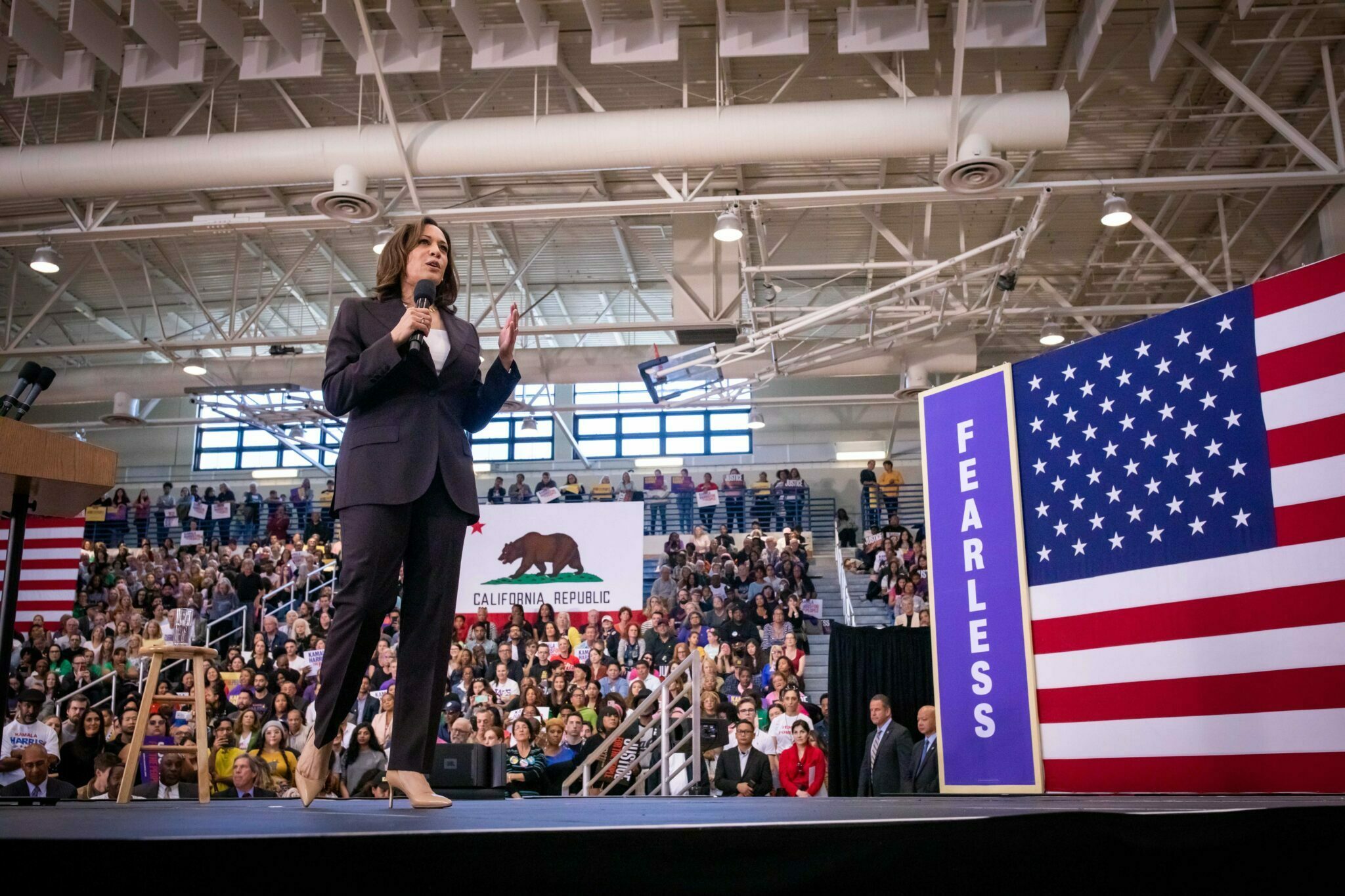 הסנאטורית קמלה האריס, המתמודדת על מועמדות המפלגה הדמוקרטית לנשיאות, פתחה את מסע הבחירות שלה מול עשרים אלף בני אדם בעיר אוקלנד • האריס תקפה את מדיניותו הכלכלית של הנשיא טראמפ וטענה כי המגזר הבנקאי. קמלה האריס הושבעה לפני זמן קצר לסגנית הנשיא. סגן הנשיא היוצא מייק פנס כיבד את האריס בנוכחותו. לאחר השבעת הנשיא ביידן יתקיים טקס סגנית הנשיא המיועדת קמלה האריס לאחר ההשבעה הנשיא ביידן וסגנית הנשיא האריס יסקרו את משמר הכבוד. לפני כן כיהנה כתובעת הכללית של קליפורניה, והיא האישה האפרו⁻אמריקאית והאסיתית⁻אמריקאית.